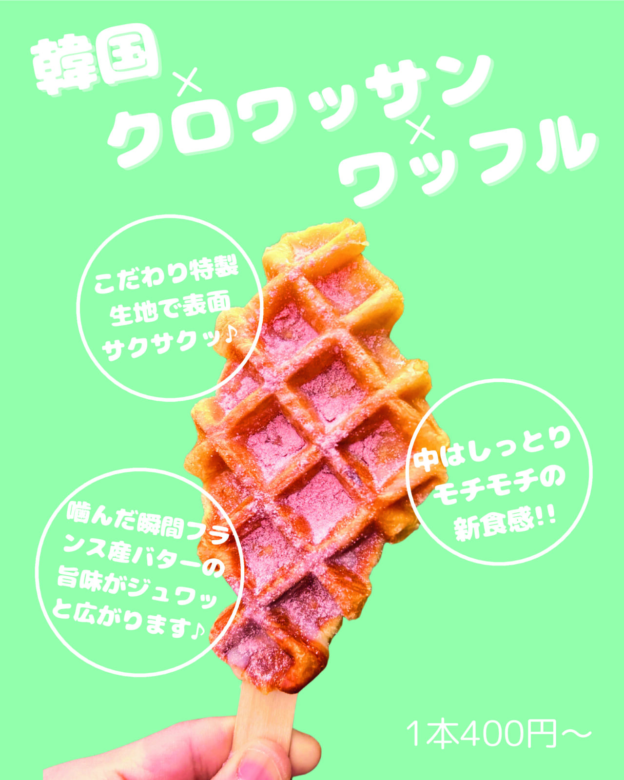 「ピンフル」は韓国で大人気のクロワッサンのサクサクの生地とバターの旨味とワッフルのもちっとした食感が合わさった新感覚スイーツ「クロッフル」の専門店です。