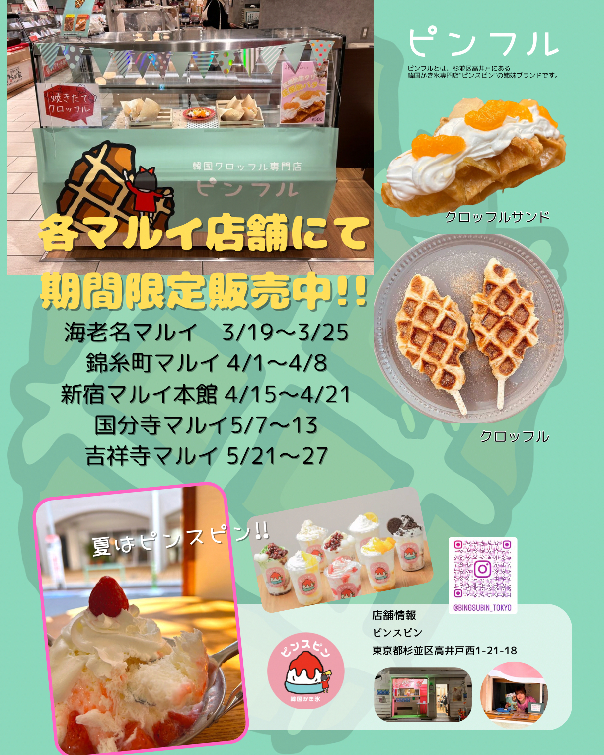 2025年4月1日〜4月8日の期間、錦糸町のマルイ1Fイベントスペースでクロッフル専門店「ピンフル」が初出店中です。