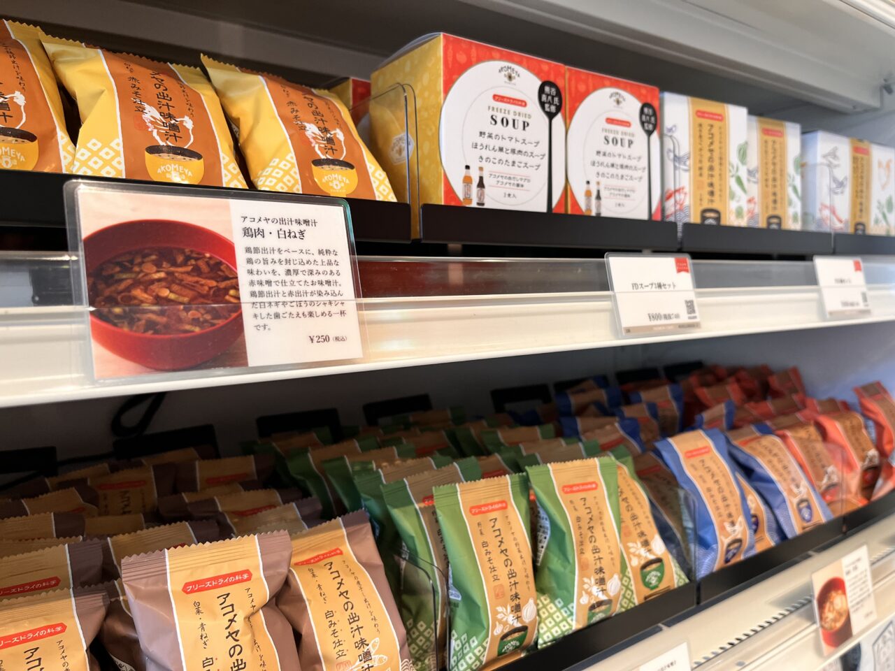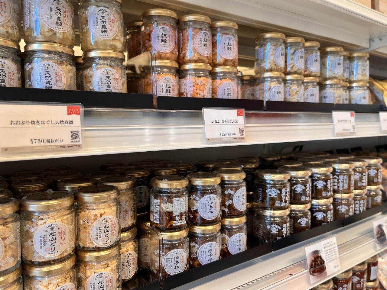 AKOMEYAラベルのついた、AKOMEYAでしか買えない商品も多いので自宅用だけでなく、手土産にも良さそうです。