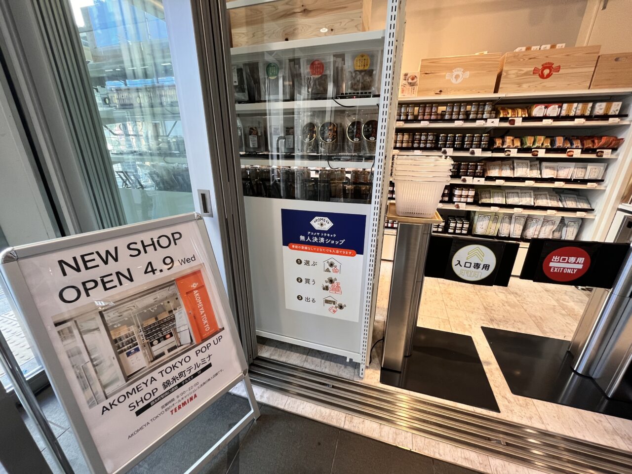 そのスペースに2025年4月9日、無人決済ショップ「AKOMEYA TOKYO POP UP SHOP 錦糸町テルミナ」が期間限定オープンしていました。