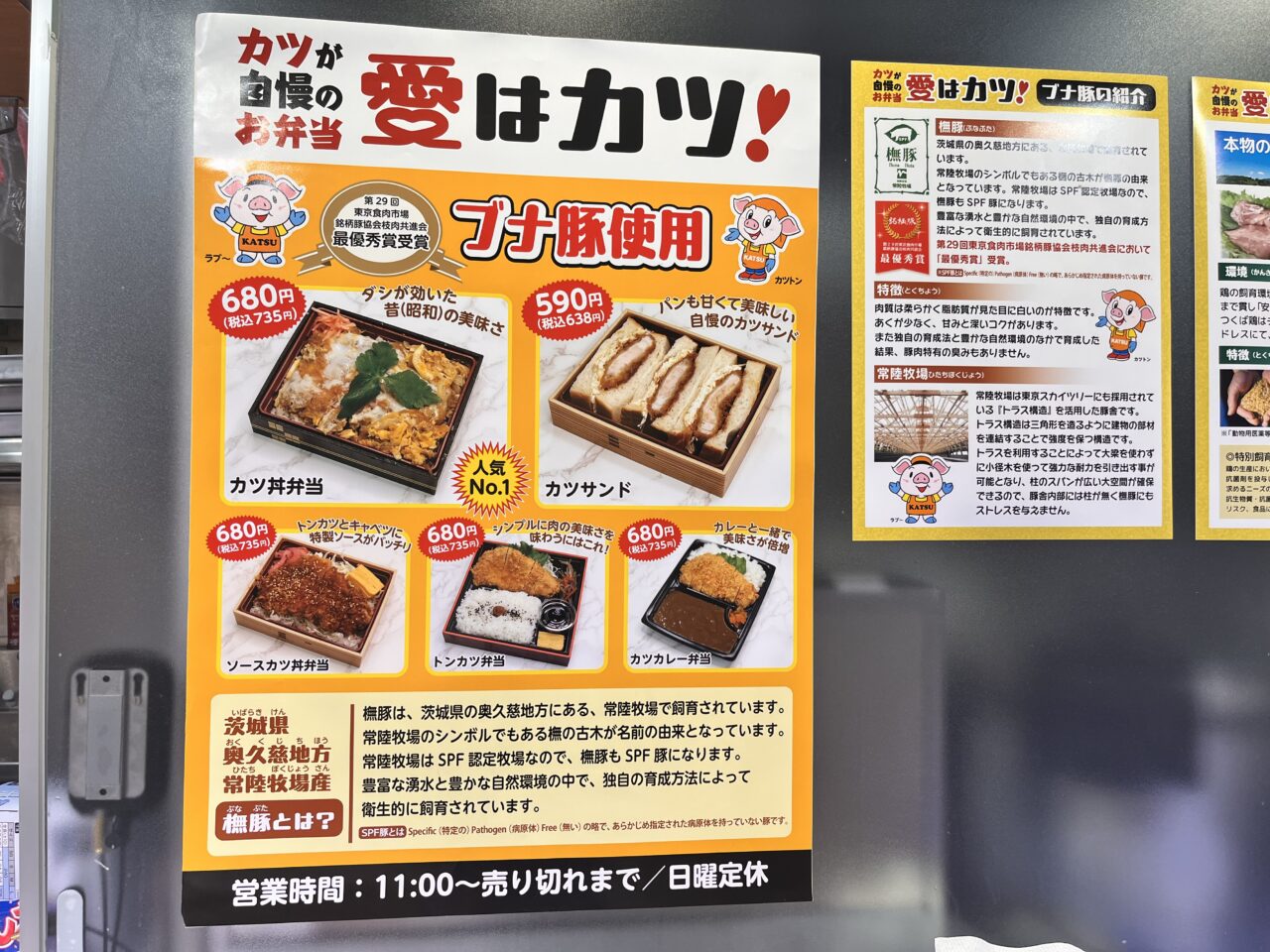 その他、早々と売り切れてしまったという「カツサンド」や「ソースカツ丼」特別飼育鶏である「つくば鶏」を使用した唐揚げ弁当もあるそうです。