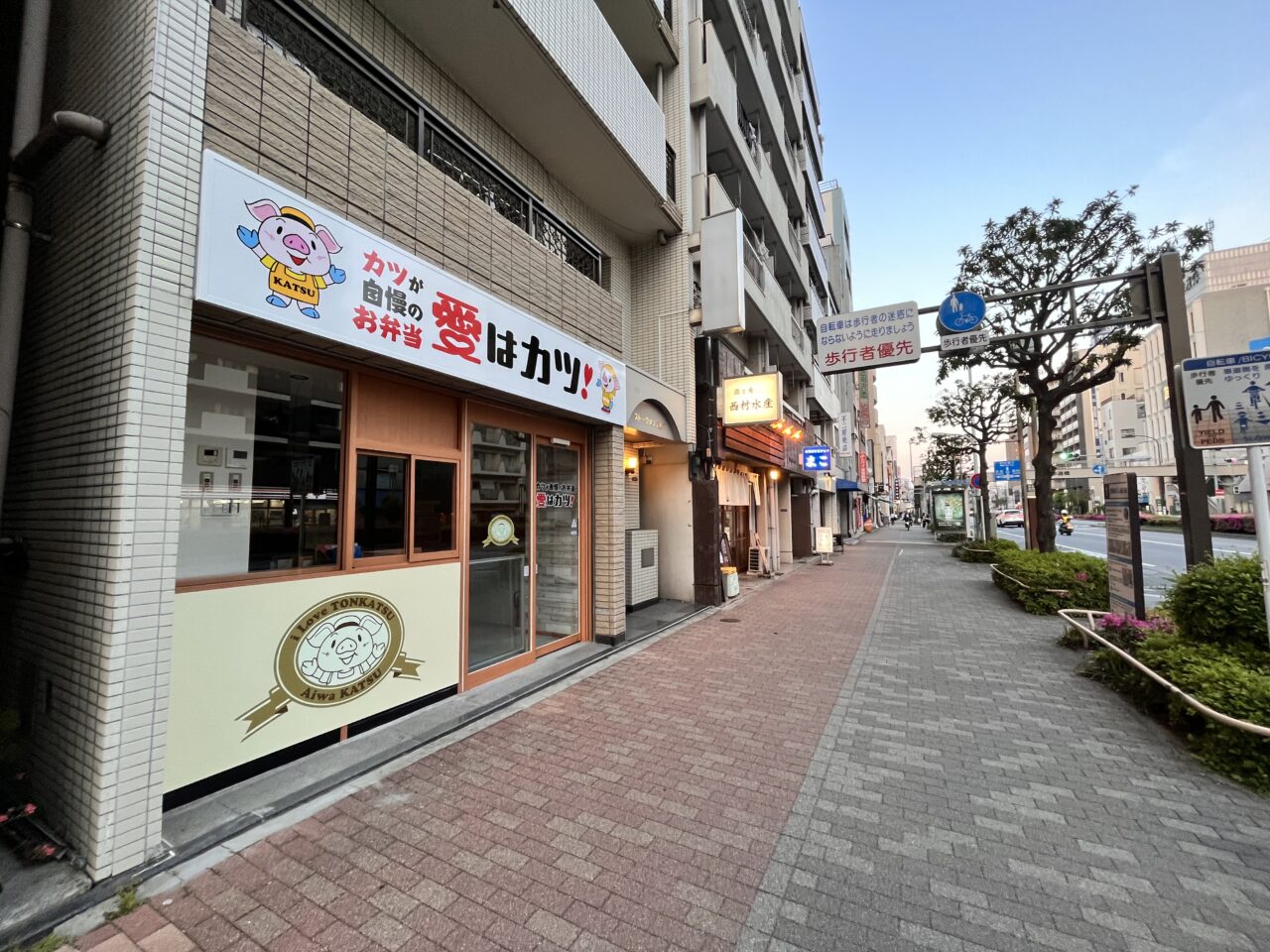 浅草通りを走る区内循環バス「すみまるくん」に乗っていても気になった、とても目立つ看板に赤いひさし。「カツが自慢のお弁当」ということでテイクアウト専門店のようです。