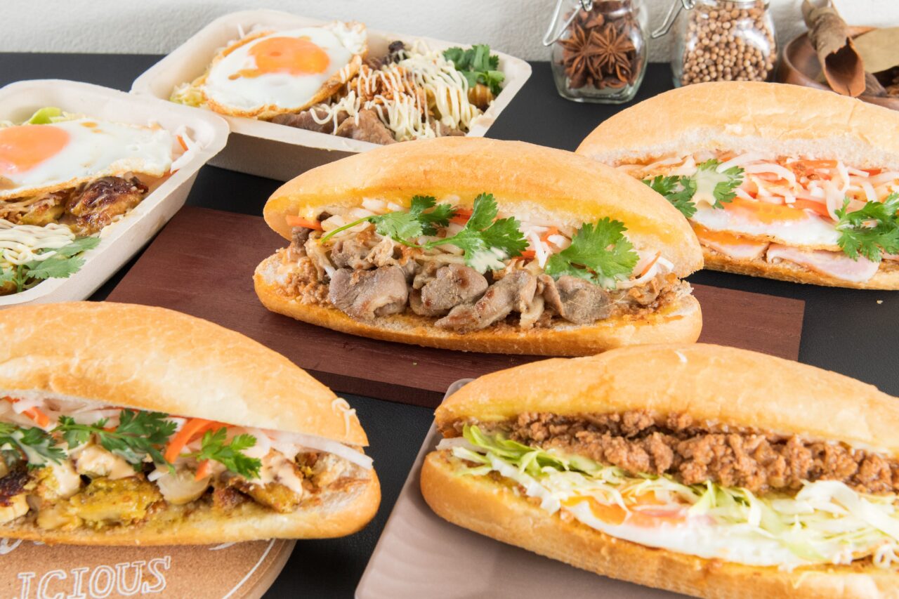 手軽に食べられるのに、栄養満点でボリュームたっぷり。フランスパンに新鮮な野菜、特製の肉やパテをたっぷりサンドした、外はカリッと中はふんわりの絶品グルメ。