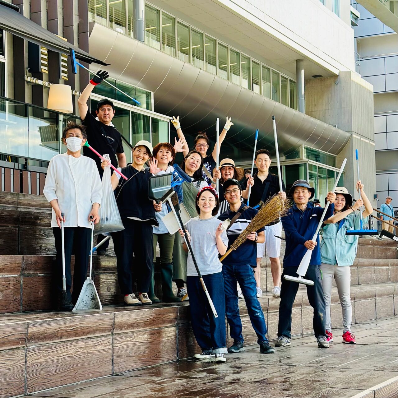 隅田川マルシェはボランティアの方々で運営。事前に階段部分の清掃を実施して来場される方が川でゆっくり、ゆったりとして頂ける空間づくりをして皆様のご来場をお待ちしているとのことです。