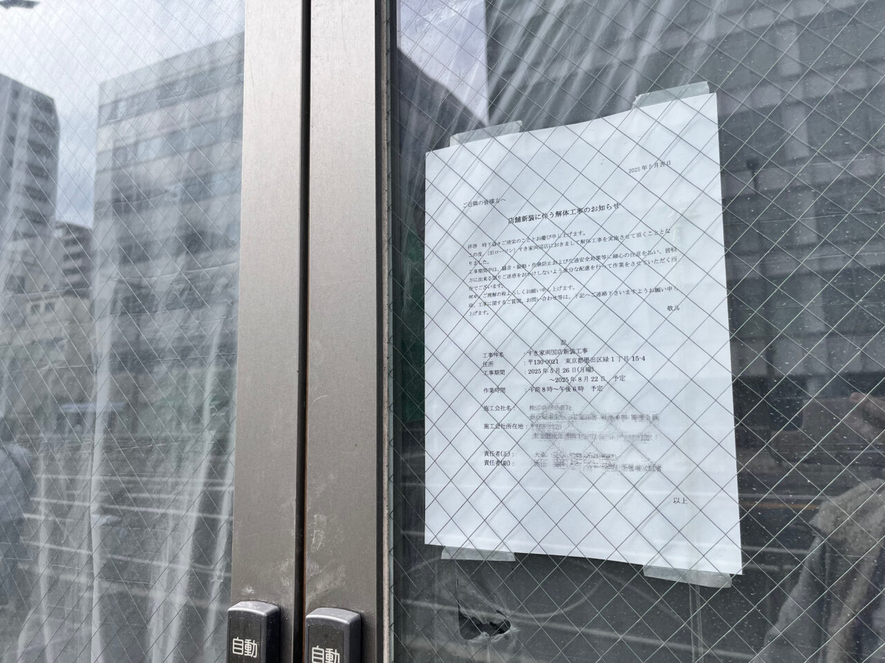 2025年5月末、店頭に一枚のお知らせが貼られていることに気が付きました。