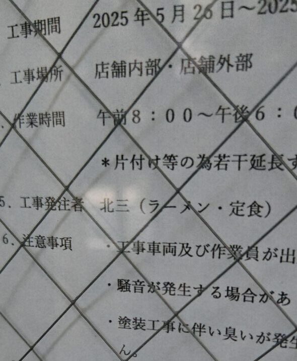 「貼り紙をのぞくとどうもラーメン屋ができるようです。」と情報提供様から貼り紙の画像も頂いていましたが、そこに「北三」の文字を発見!