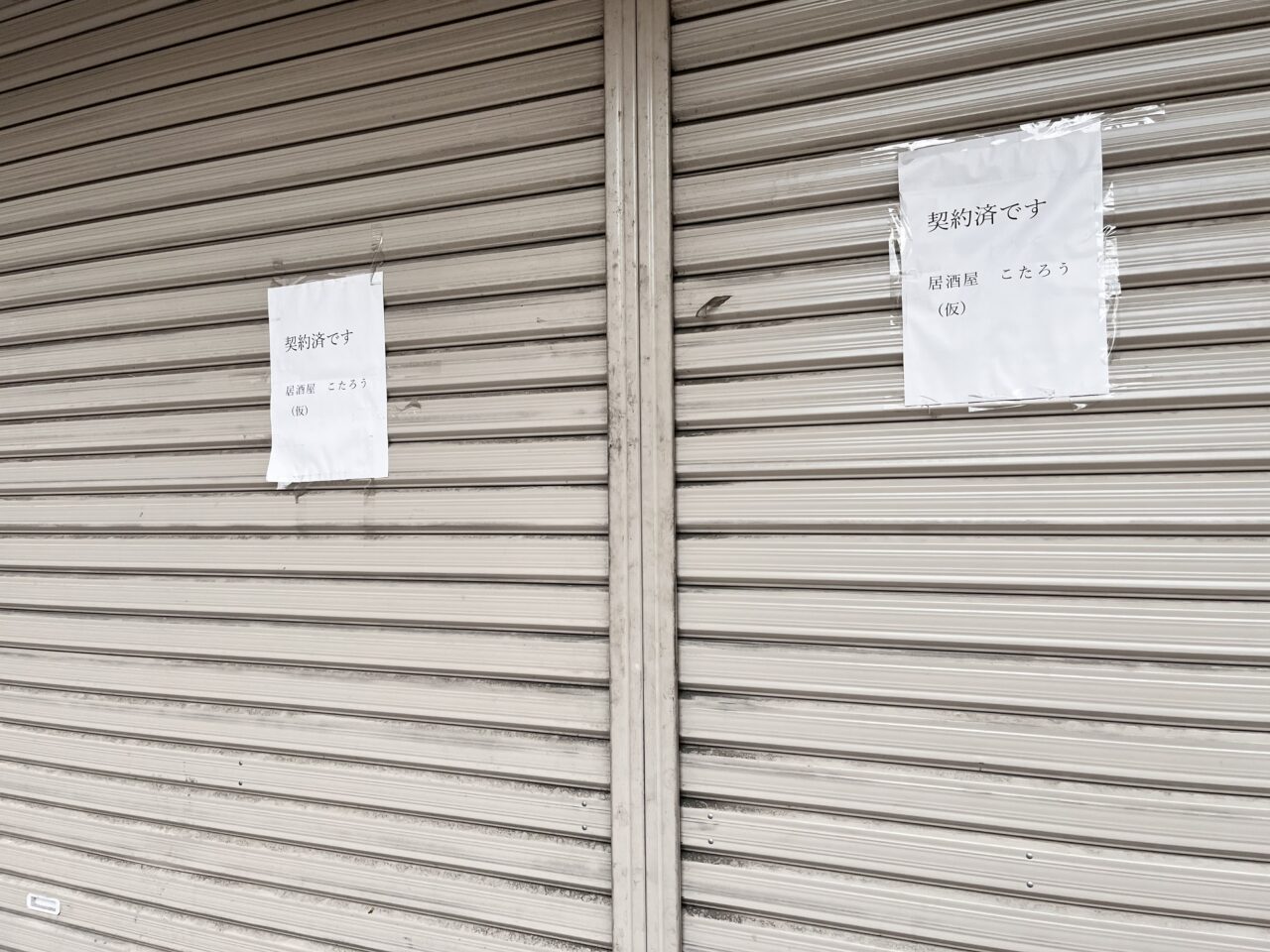 閉店してまもなく「契約済みです 居酒屋こたろう(仮)」という掲示がはられました。