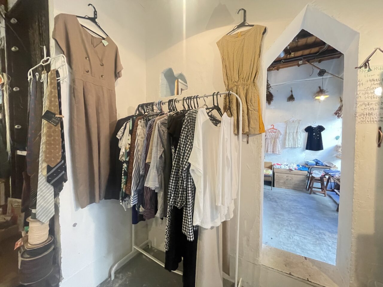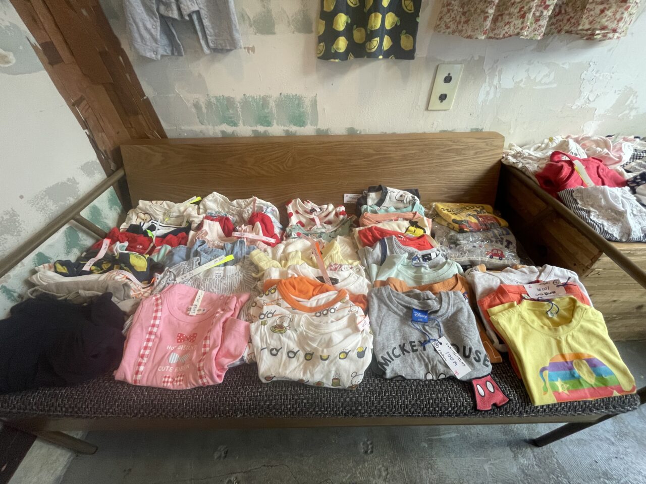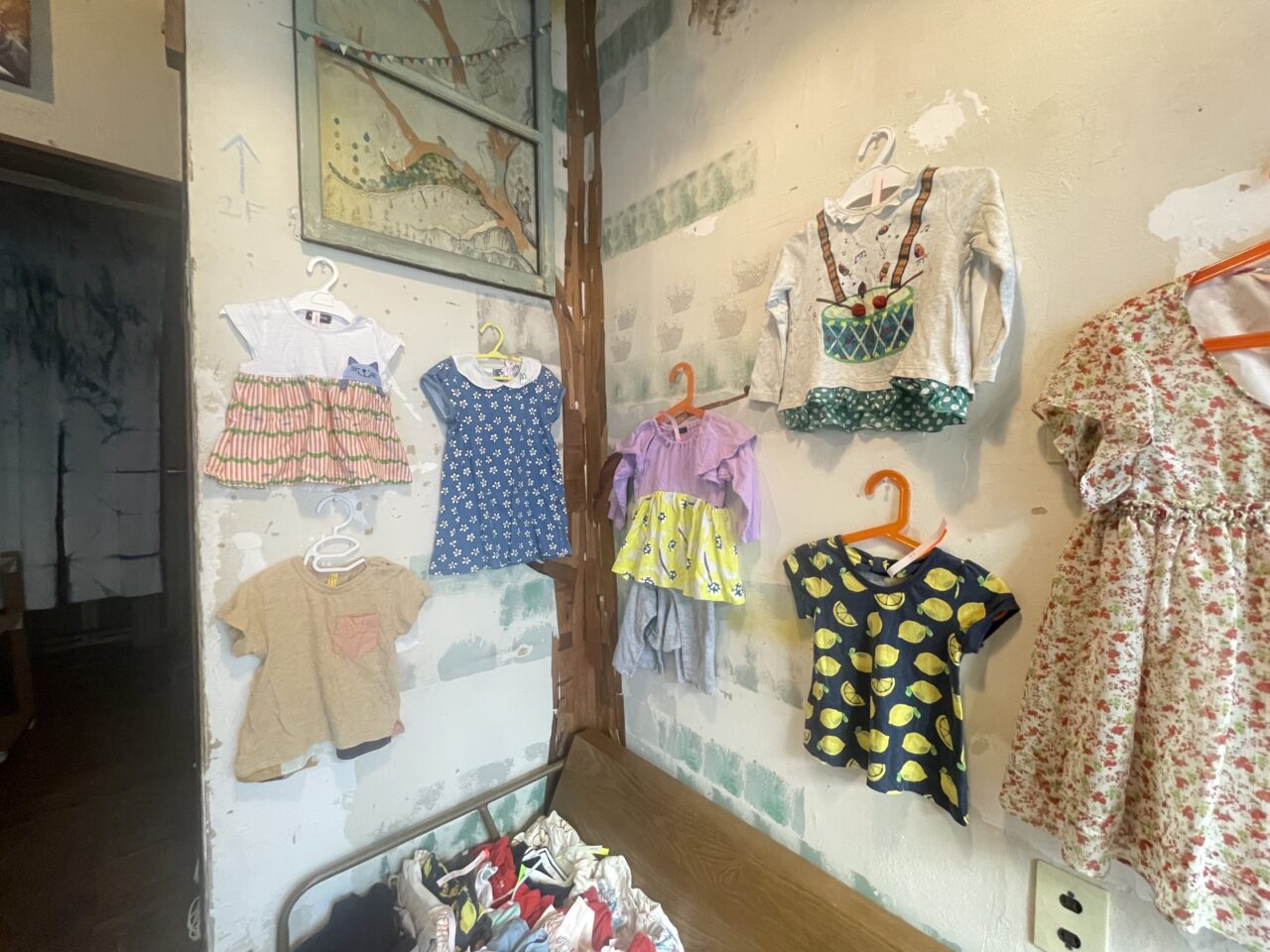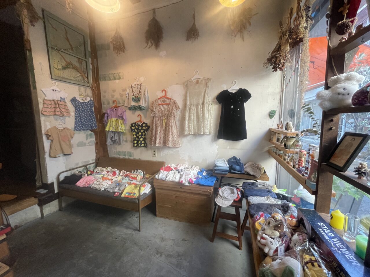 お隣のサテライトキッチンへはお店の中でつながっており、子供服がたくさん置いてありました。
