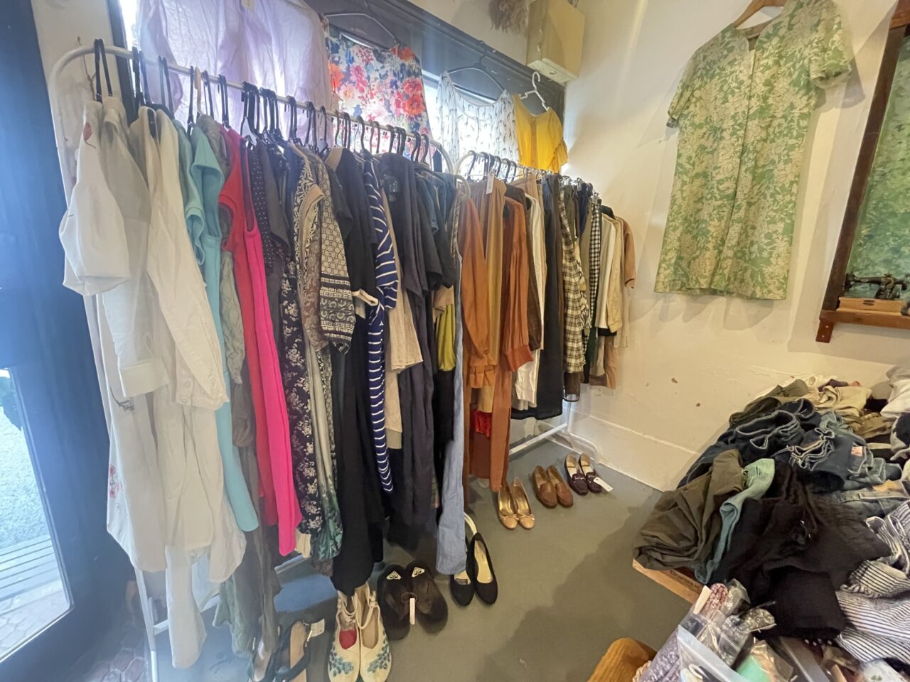 ワンピースやスカートのラック。パンプスなどのシューズ類もありますよ。