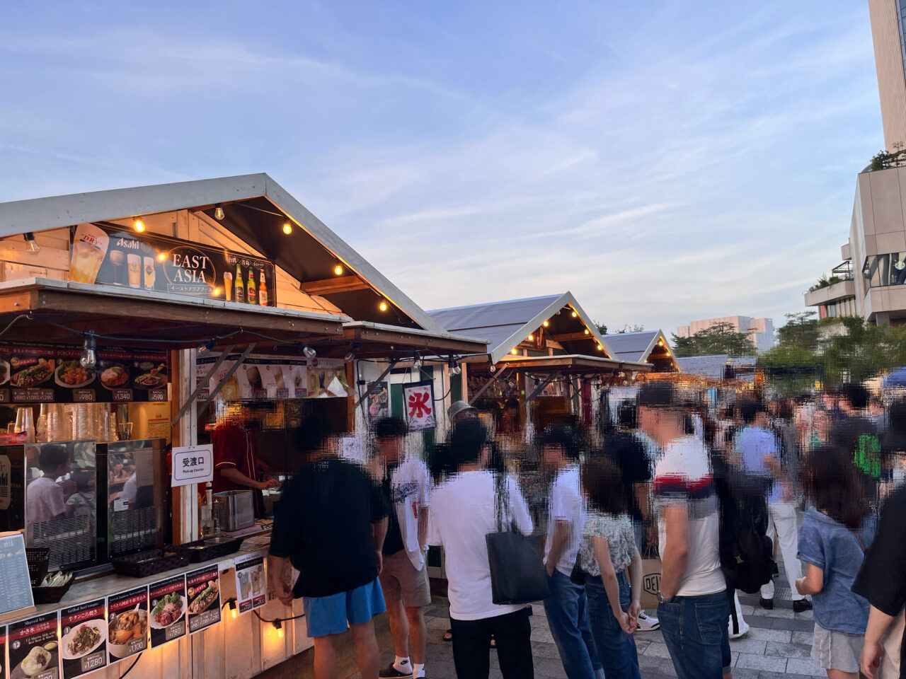 EURO/USA/EAST ASIA/LATIN AMERICAの4エリアに分かれたブースで、各国のビールや料理、かき氷まで楽しめます。例えば、ヒューガルデンや台湾ビール、牛サイコロステーキやガパオライスなど、食べ歩きで世界旅行気分が味わえます。