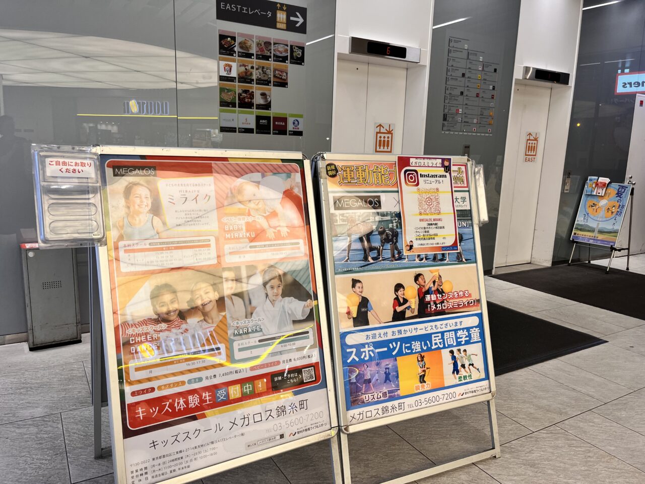 早速、メガロス錦糸町店へ向かうエレベーターのところに行ってみましたが、特に閉店についての掲示はされておらず、ここだけみると普通に営業していく感じがしました。