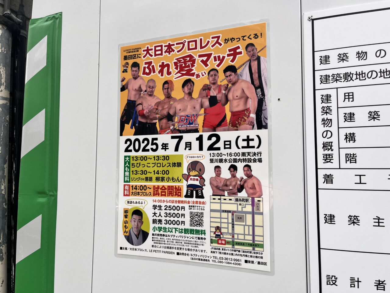 【墨田区】落語とプロレスの異色コラボ、文化とエンタメが融合!7月12日(土)堅川親水公園にてプロレスイベントが行われます。