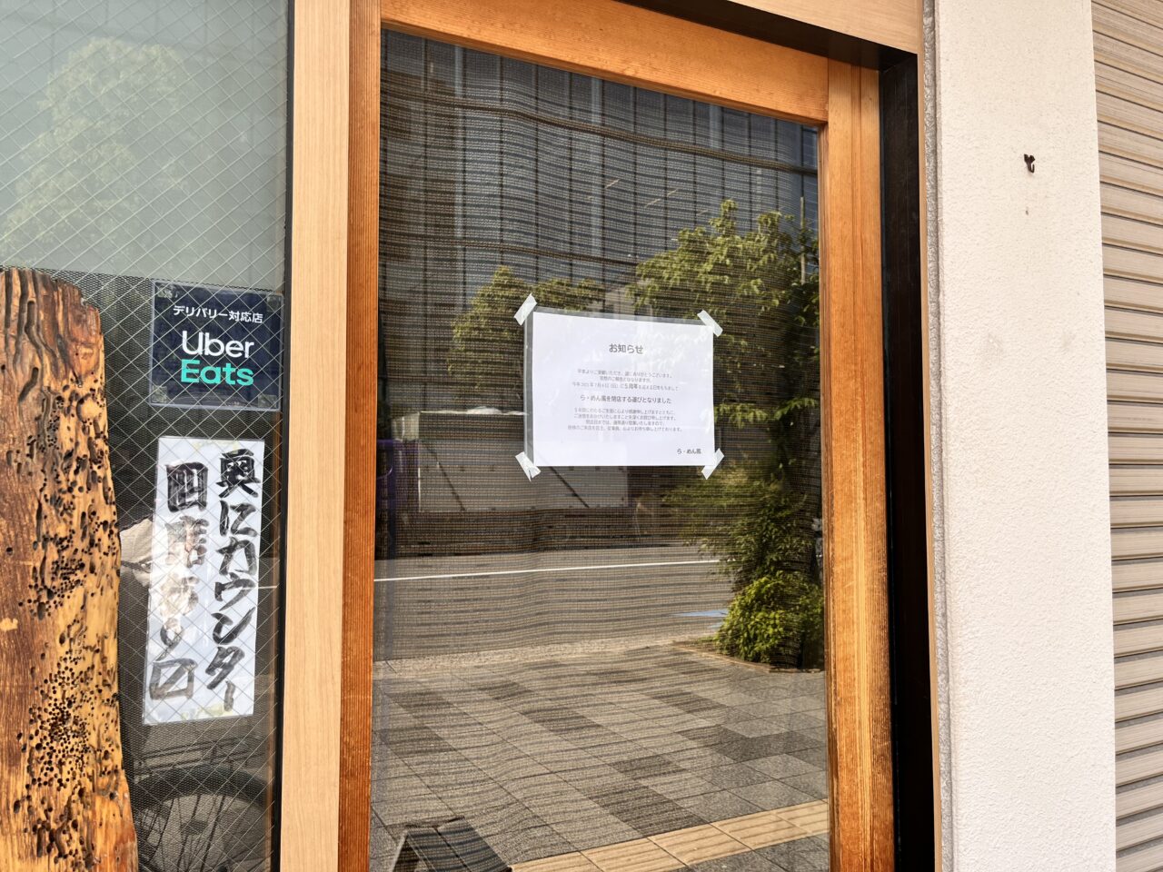 以前から掲示してあったお知らせに加えて「営業を終了しました」とのお知らせが掲示されていました。