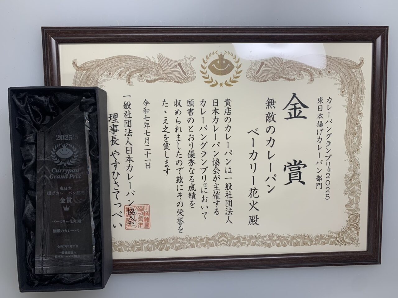 2025年7月21日に授賞式が行われ、「東日本揚げカレーパン部門」でベーカリー花火が2年連続金賞を受賞したそうです。
