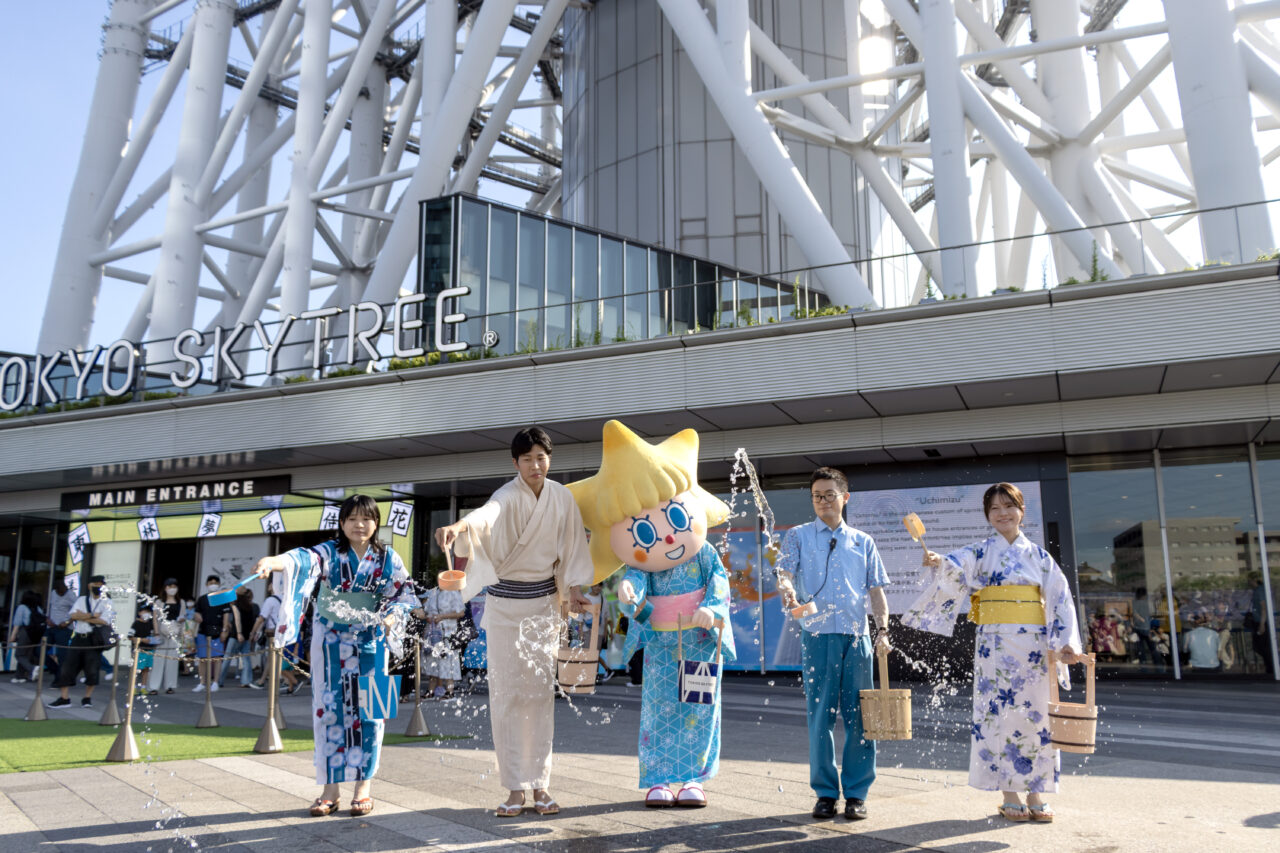 東京スカイツリーにお越しいただいたお客さまへ歓迎の意を込めて、また、熱中症対策の一環として「涼」を感じていただける、打ち水を実施します。